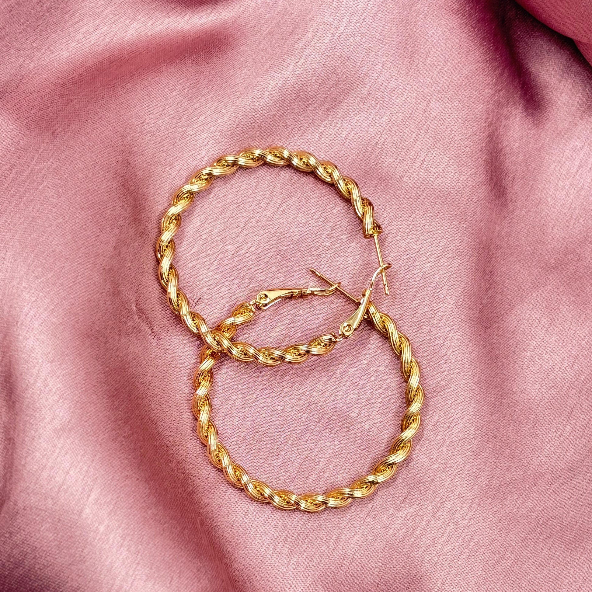 A timeless classic with a twist! These intricately braided rose gold-plated hoops add a touch of sophistication to any outfit. Crafted for elegance and durability, they are anti-tarnish and lightweight, making them a must-have for effortless styling.