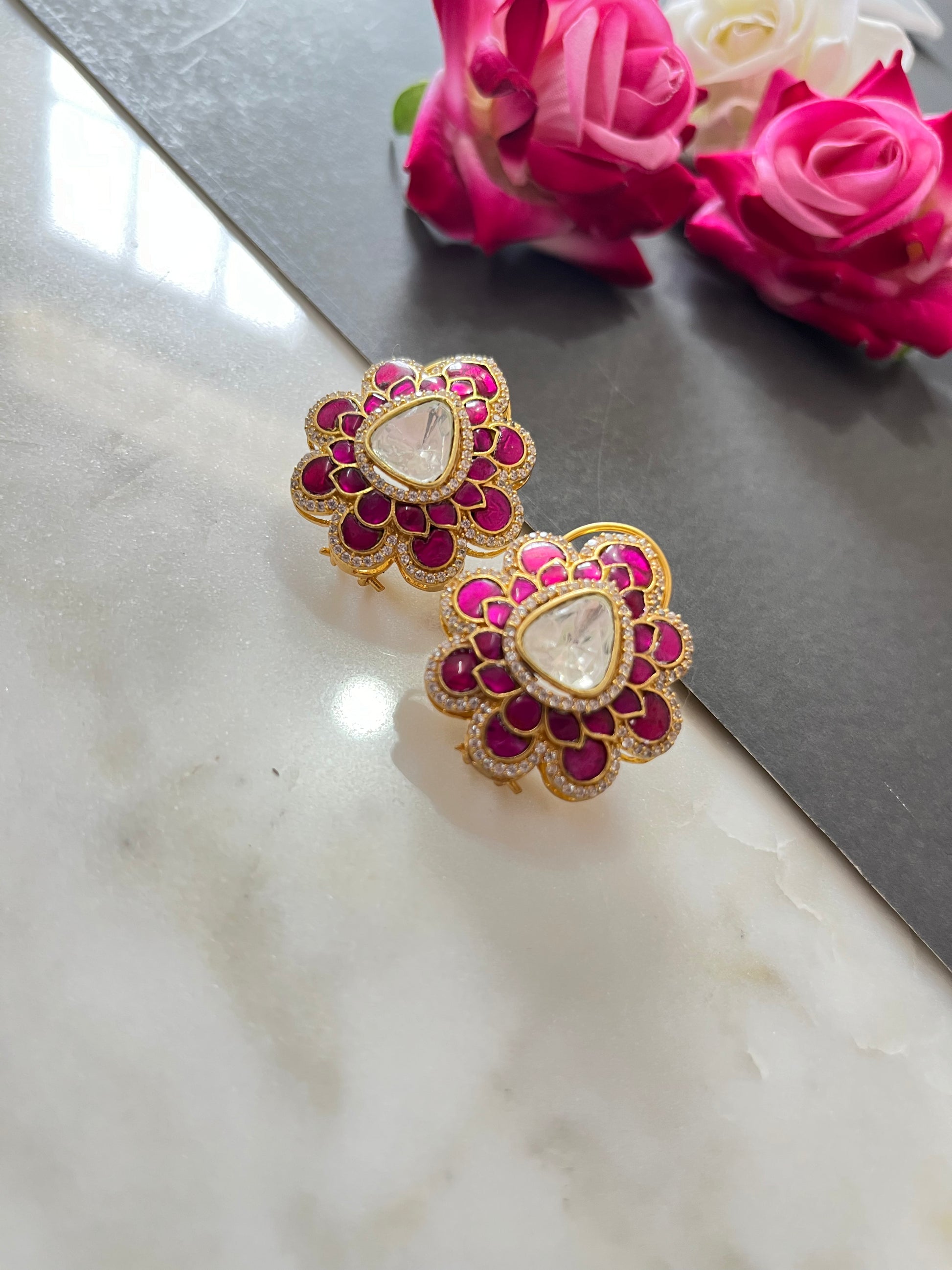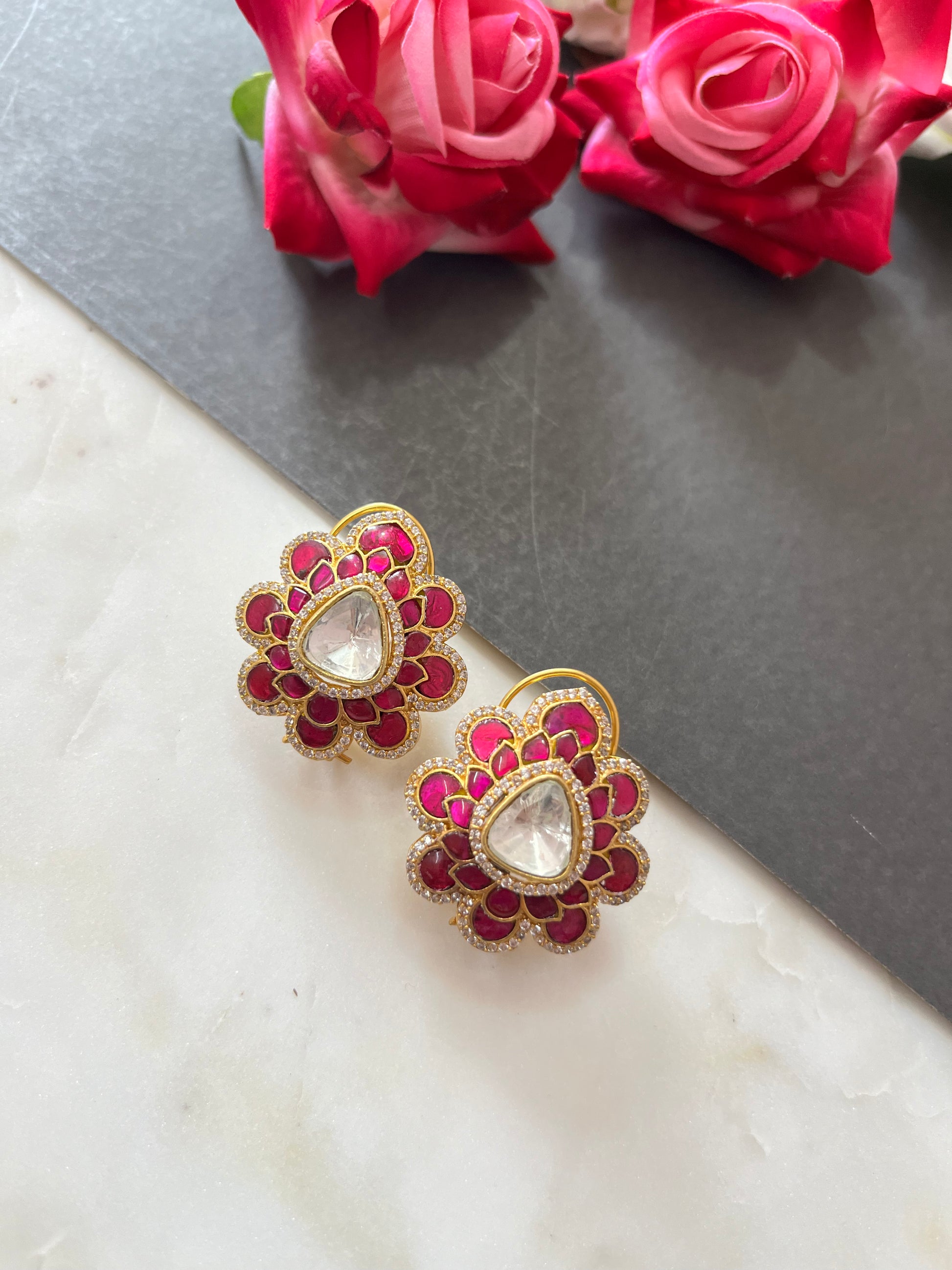 "Adorn your ears with timeless elegance with our Traditional Imitation Ruby Stud Earrings. Crafted to perfection, these studs feature intricate detailing and imitation rubies that capture the essence of traditional beauty. Elevate your style with this classic accessory that adds a touch of sophistication to any ensemble."