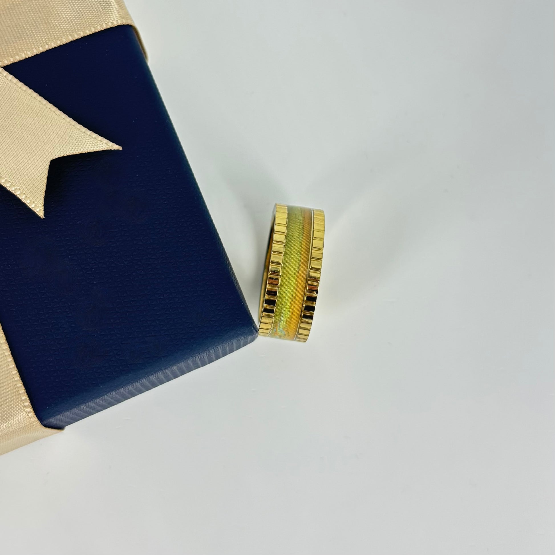A statement piece that blends artistic elegance with modern luxury! This marbled enamel ring, framed by a textured gold border, is a must-have for those who love unique and bold accessories.