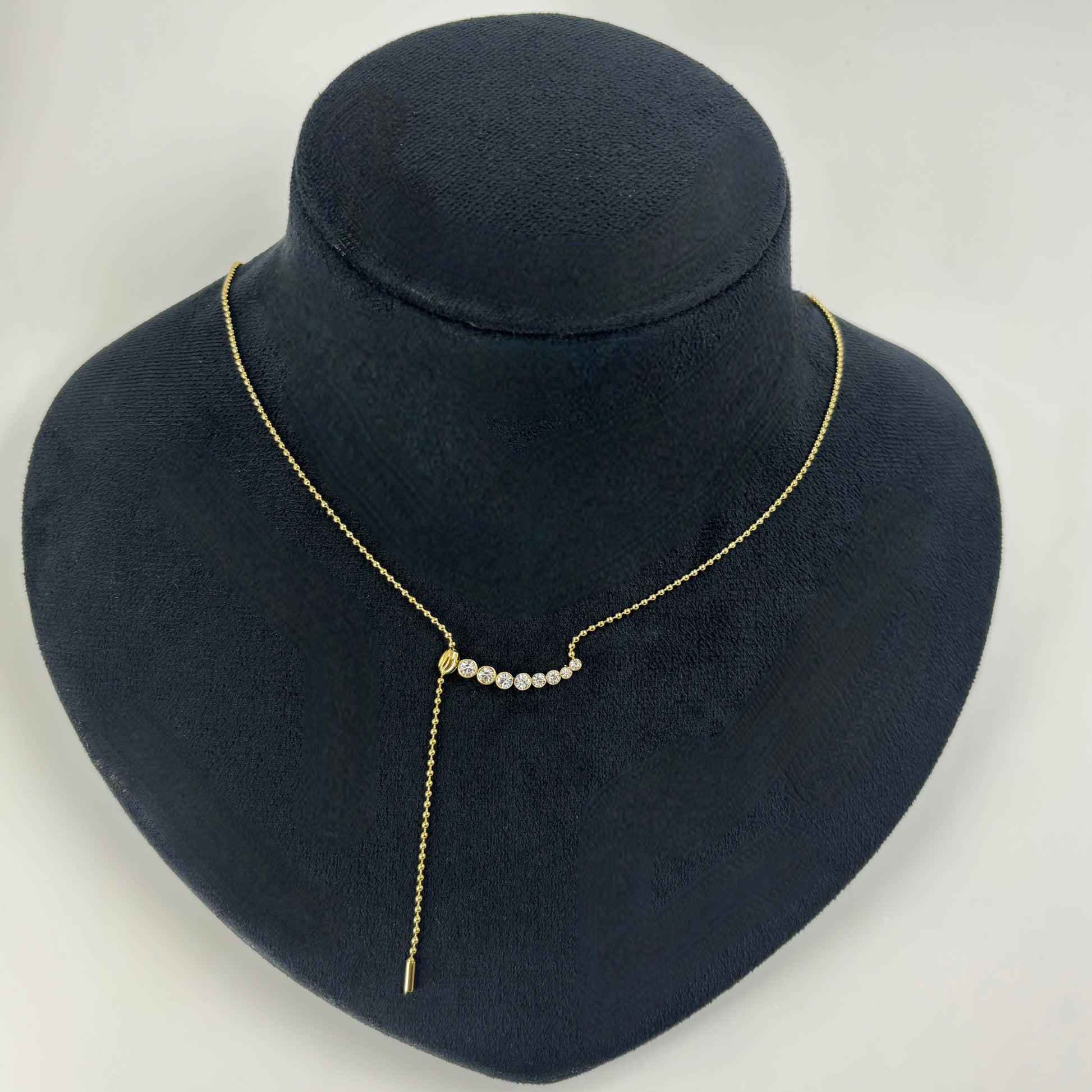 A timeless piece for effortless elegance, this dainty gold chain features a subtle drop, creating a delicate and sophisticated silhouette. Perfect for layering or wearing solo for a minimal, graceful touch.