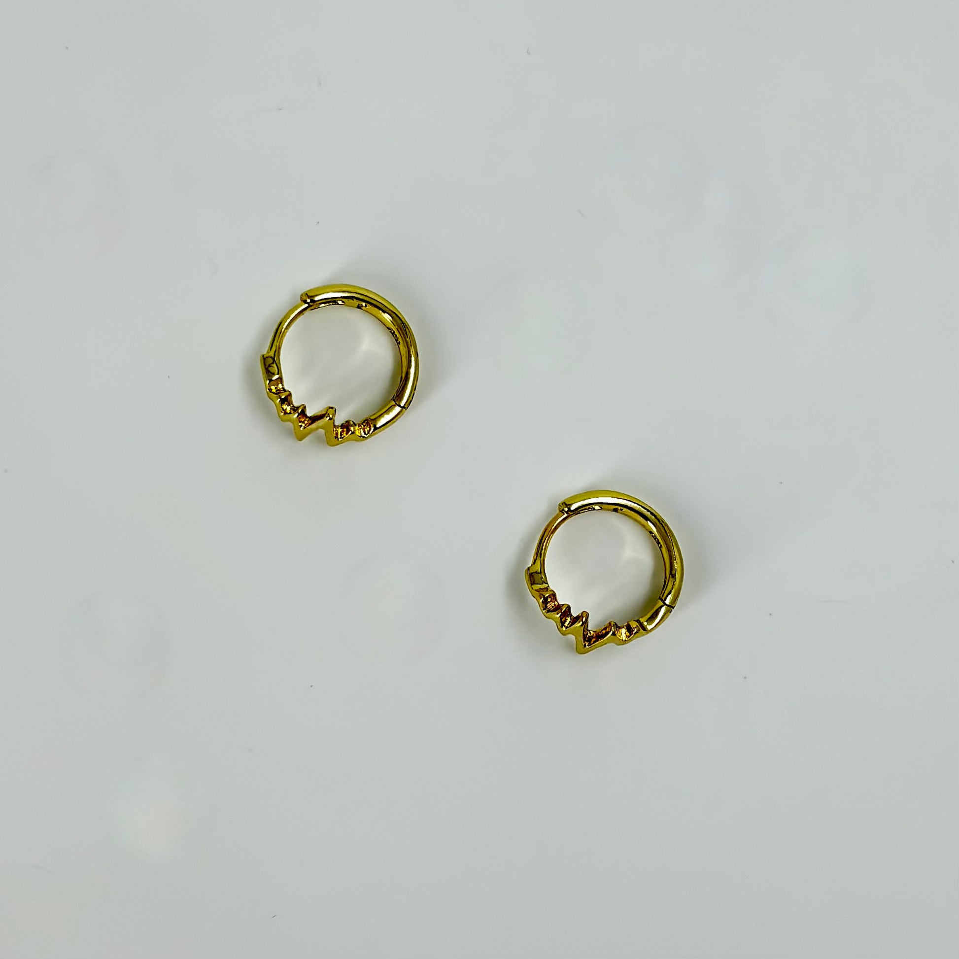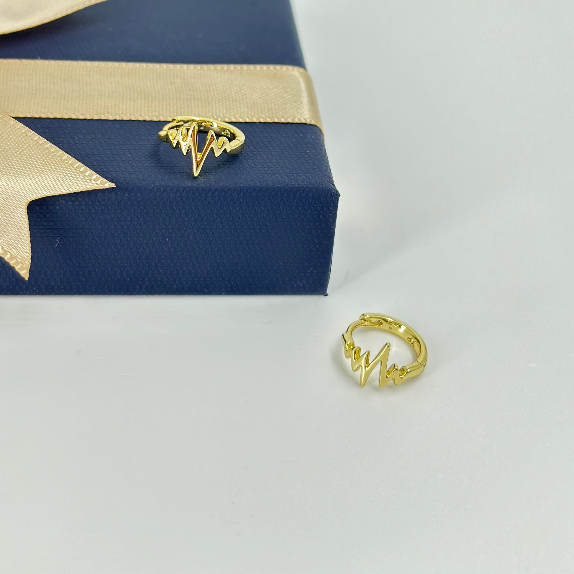 Inspired by the heartbeat of love and life, this open-style hoop features a unique electrocardiogram design, plated in radiant gold. A contemporary piece that symbolizes energy, passion, and endless love.