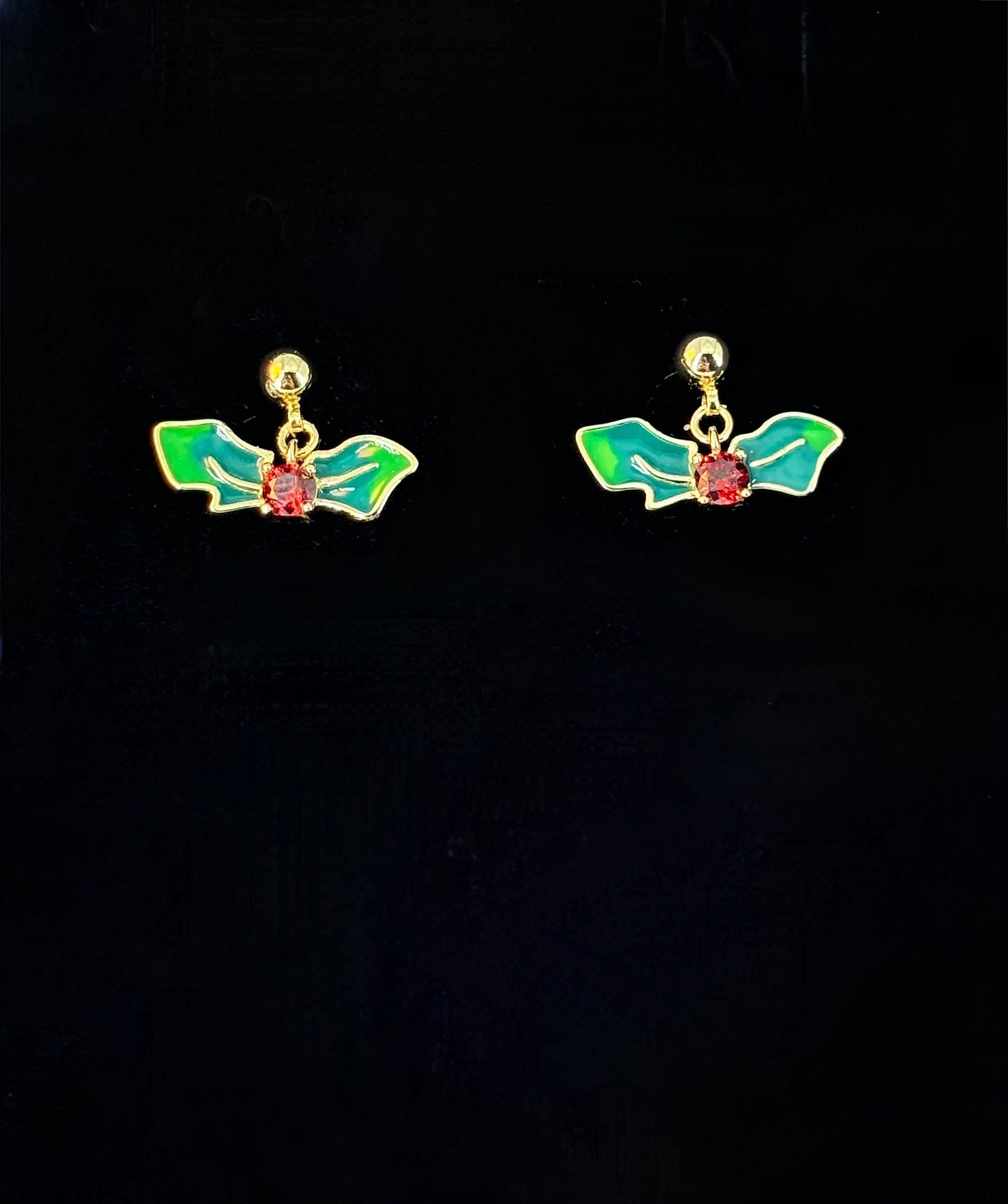 Add a playful holiday charm to your look with these adorable gold-plated leaf earrings. Designed with vibrant red and green enamel, these earrings are perfect for spreading cheer.