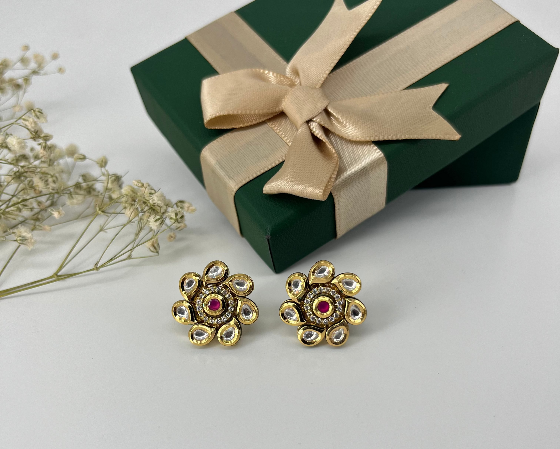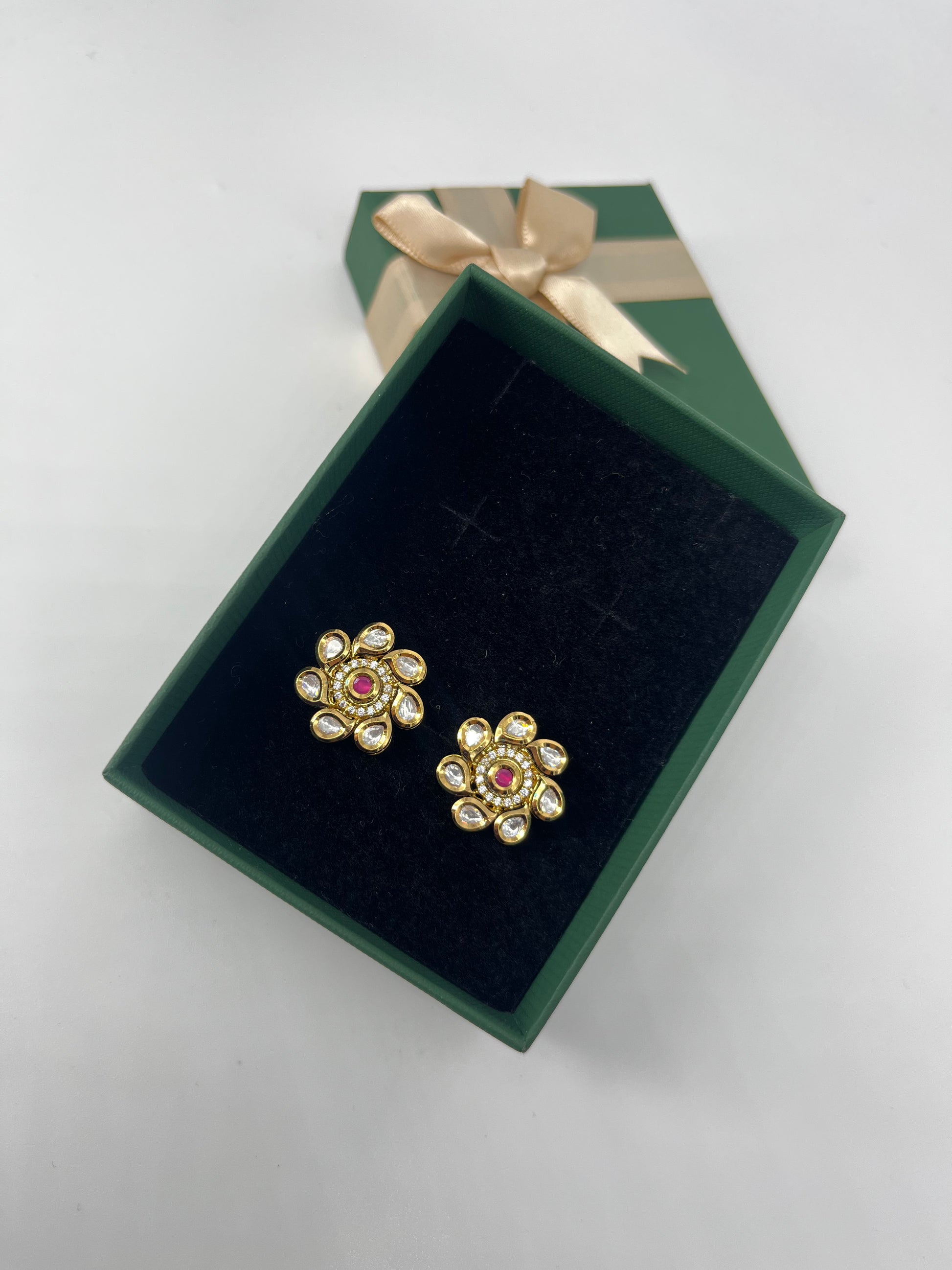 ruby kundan floral stud